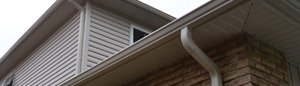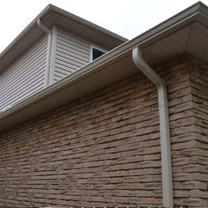 Eavestrough, also referred to as rain gutters, trough or gutters. The eavestrough collects roof rainwater funneling it into a downspout which then diverts the water away from the structure. It is crucial in avoiding saturation of rain water against the foundation of your home. We install both 5” and 6” seamless gutter with either large square 3” x 3” or jumbo 3” x 4” pipe. We miter our corners and secure downpipes to the wall with screws and plugs not nails. A wide variety of colours are available for matching your existing soffit and fascia if only replacing gutters.